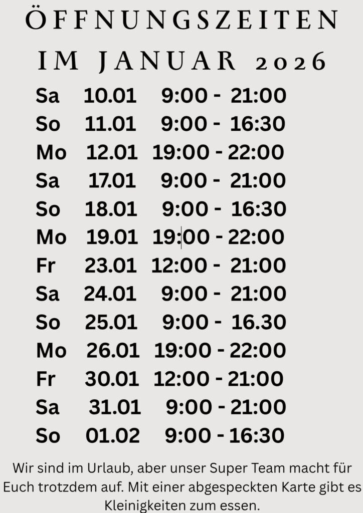 | Montag | Geschlossen jeden ersten und dritten Montag tanz von 19:00 bis 22:00 |